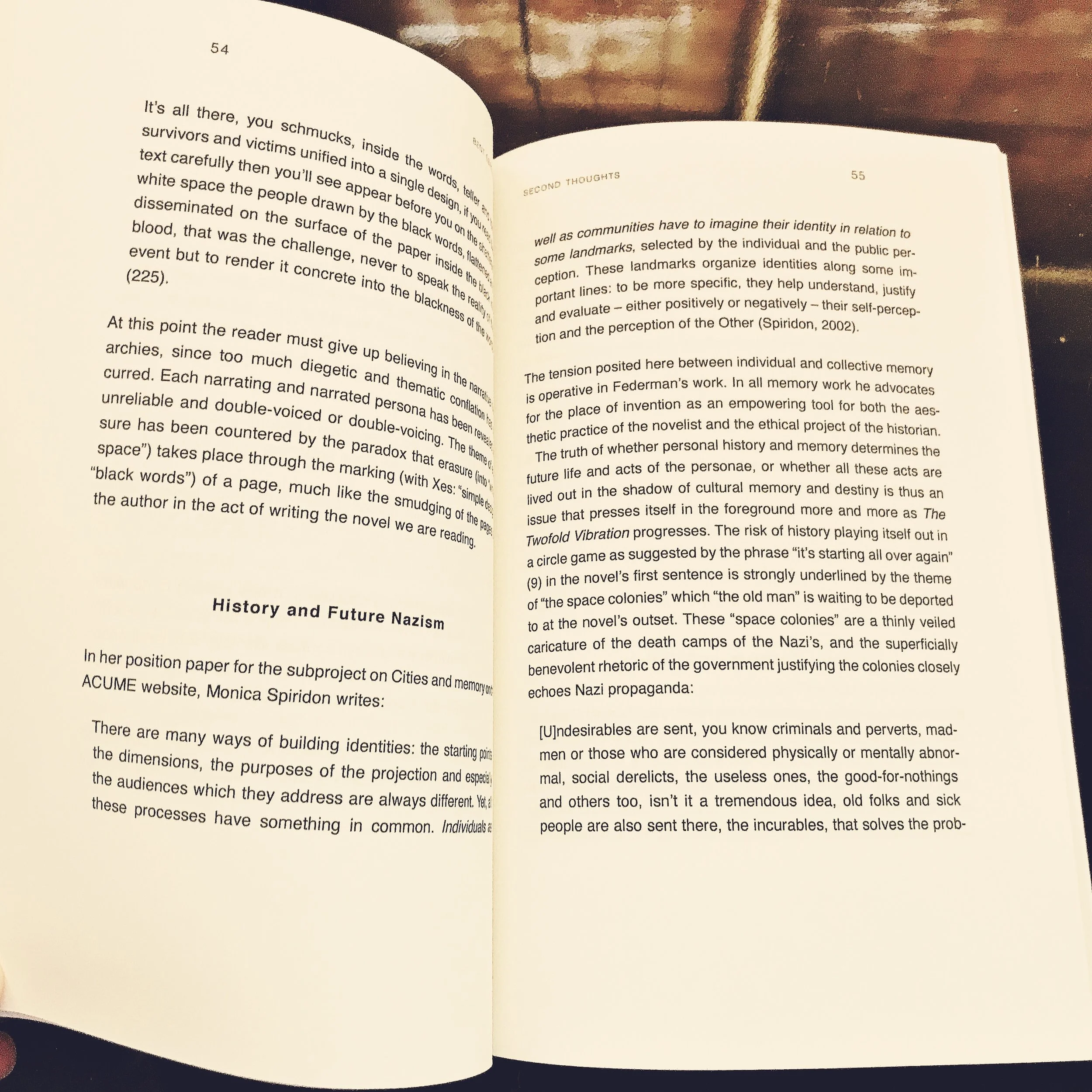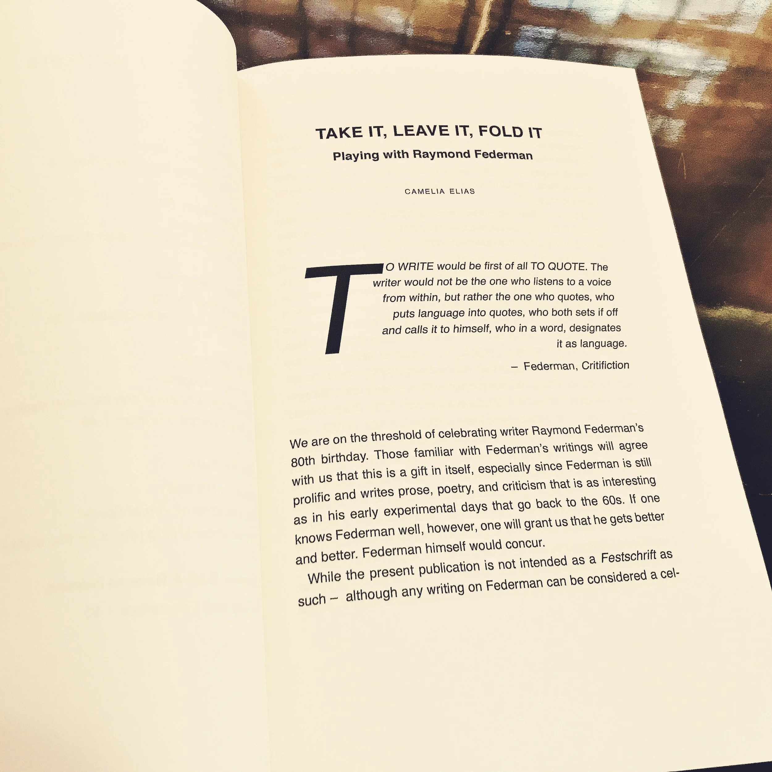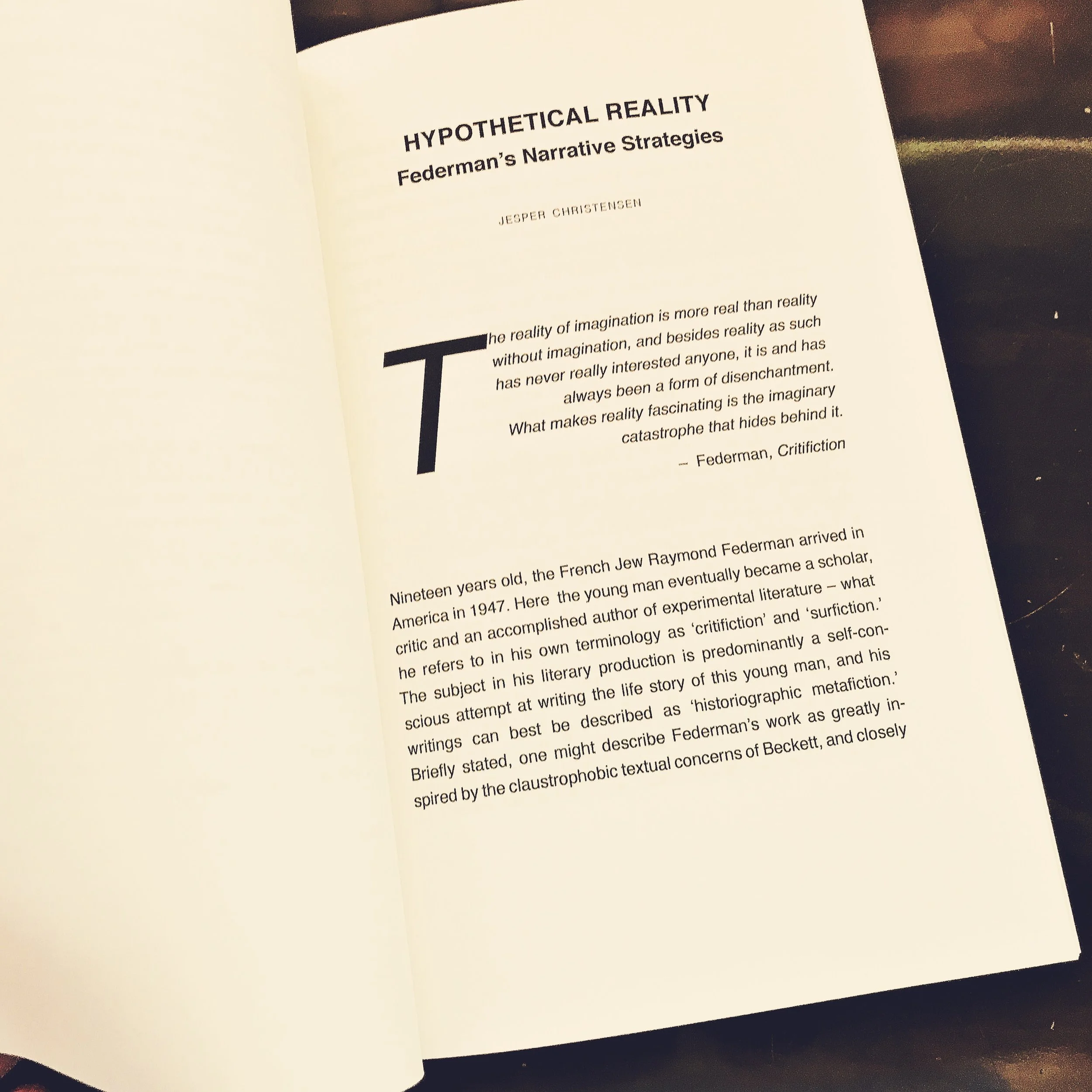 Celebrated American author Raymond Federman is 80 this year. The present volume, which is a collaboration between scholars at Aalborg and Roskilde University, marks this event in addition to introducing Federman to the general public. As Federman has given the editor, Camelia Elias, his permission “to use and abuse whatever you need and want from my work including my body,” she has not hesitated to do so. The result is a fascinating read. The volume features 4 scholarly essays and an inédit encounter between Federman and Elias, featuring both of these authors’ texts.